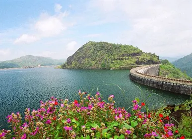 Glide through calm waters of Idukki Dam with panoramic views of mountains and forests.